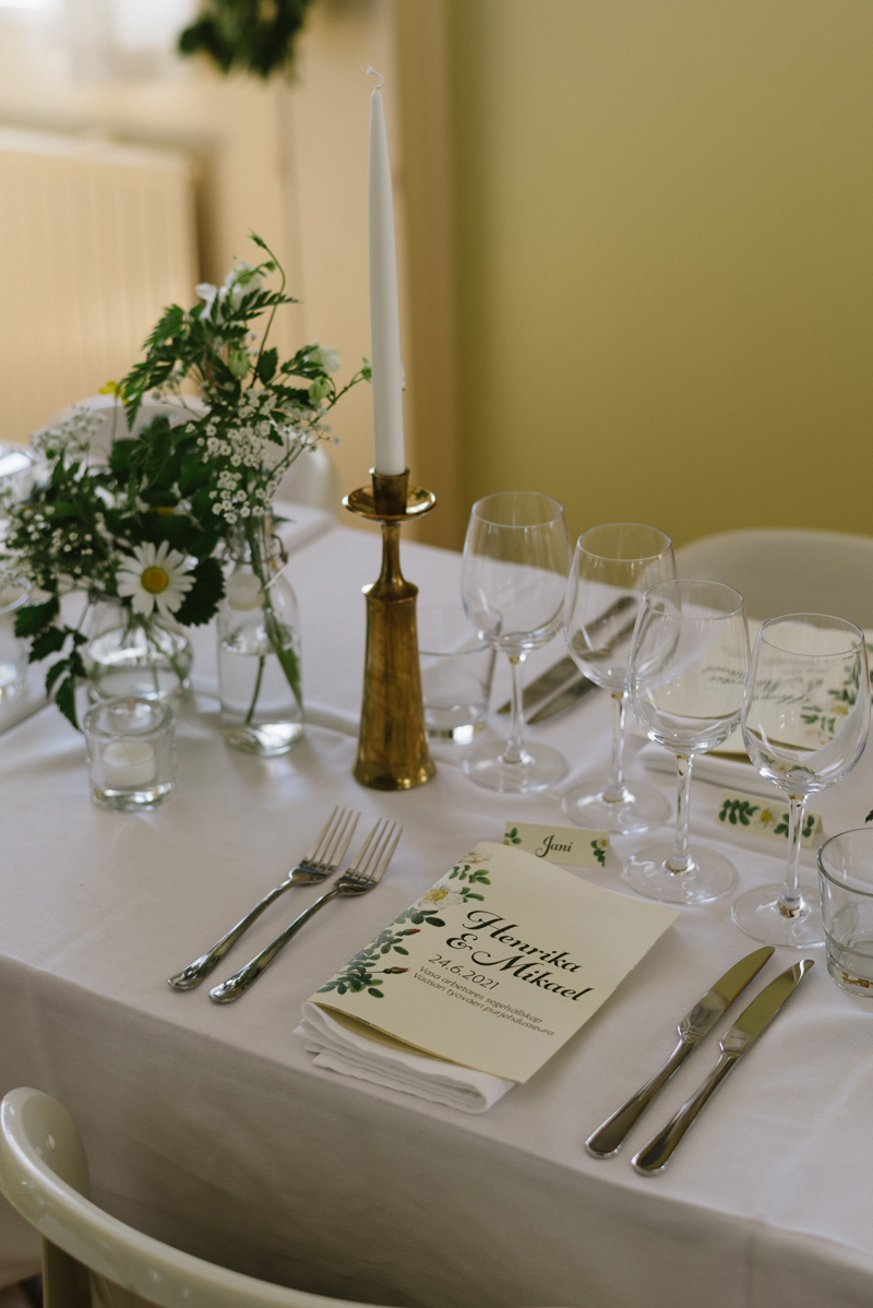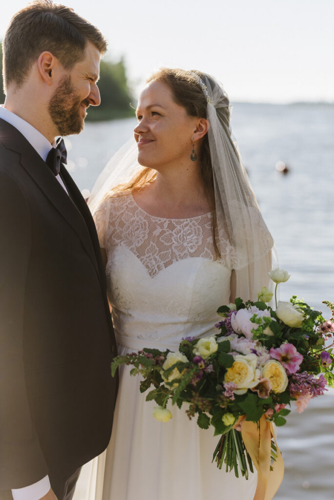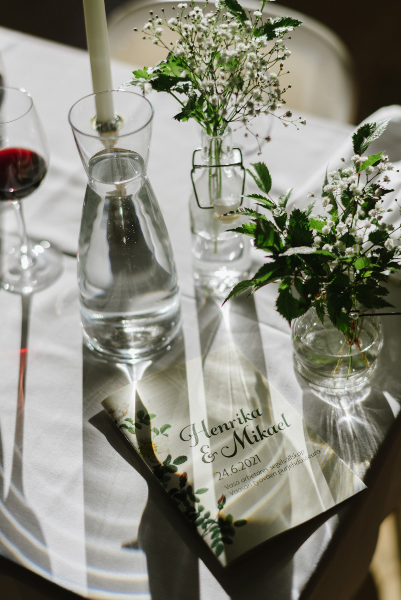 Just as their relationship, Henrika & Mikael’s wedding was calm and filled with love. We started their day with taking portraits in their own garden, followed by a ceremony at the Orthodox church and a beautiful reception right by the water at Brändö in Vasa. The night was topped off by a sun that never seemed to go down in the bright Nordic summer night.